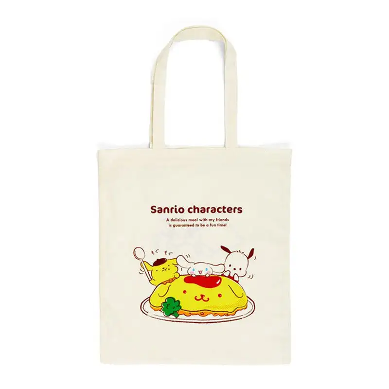 Put all of your favorite omurice ingredients in this food-themed Sanrio Tote Bag! The bag features three adorable Sanrio characters: Cinnamoroll, Pochacco, and Pompompurin!