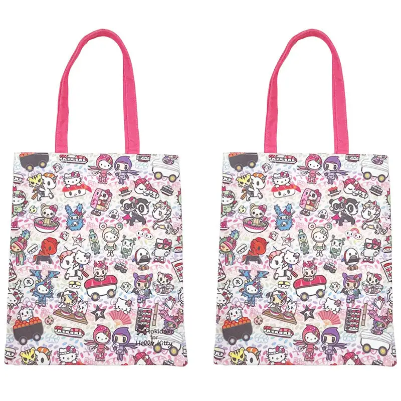 Carry your belongings in this cute Hello Kitty Tote Bag! It comes in two adorable styles: All Over Print style with red handle or Cream colored print with white handle.